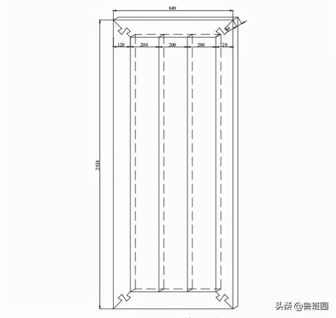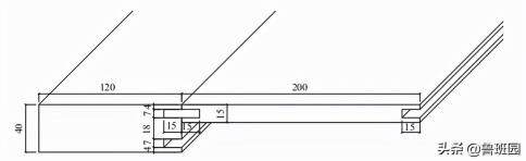 如下圖所示,芯板的長度為1784 mm、寬度為200mm,厚度為15mm,芯板在距離高低兩頭4 mm處各開1個厚度為7 mm、深度為15mm的凹槽以擺放長度為1784mm、寬度為30mm、厚度為7mm木板條。