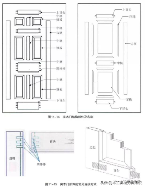 實(shí)木門全面構(gòu)造并且常見的部件連通方法見圖11-14,圖11一15所示。