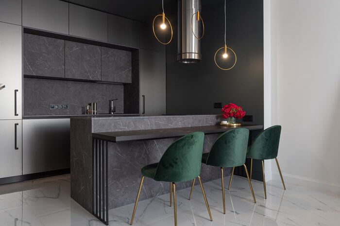 注意廚房布局:確定您的優(yōu)先事項并決定它們如何在您的廚房內工作。如果可能,請使用經典的廚房工作三角形,其中水槽、冰箱和爐灶以三角形排列。