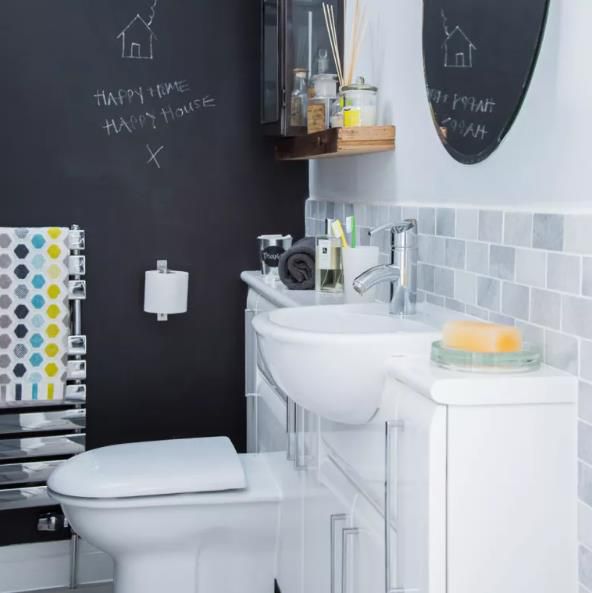 黑板漆讓您可以隨時(shí)改變前景。作為樓下廁所的想法,它創(chuàng)造了一個(gè)機(jī)會(huì),可以為客人寫歡迎信息或在使用房間時(shí)思考令人難忘的名言。為如廁訓(xùn)練增添趣味元素是一個(gè)好主意或家庭浴室。