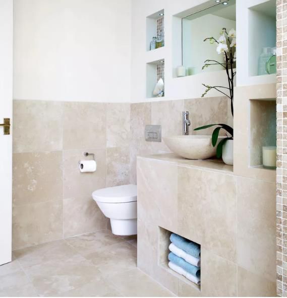 衣帽間的空間幾乎總是有限的,這意味著您需要尋求智能浴室存儲(chǔ)的想法。這些圍繞馬桶建造的櫥柜和架子不僅創(chuàng)造了必要的存儲(chǔ)空間,而且還隱藏了水箱以實(shí)現(xiàn)流線型飾面。