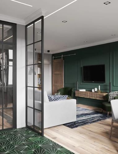 墻架,也稱為墻架成型,是最近流行的另一種外觀,您可以了解原因。無疑為任何房間(在這種情況下為客廳)增添了一絲維多利亞時(shí)代的優(yōu)雅。它不僅使空間感覺成熟(而不是過時(shí)),而且它還可以像在一天中為一幅畫框畫一樣框住電視。涂上幾層森林綠色的油漆,你很快就會(huì)像歐洲皇室一樣生活。