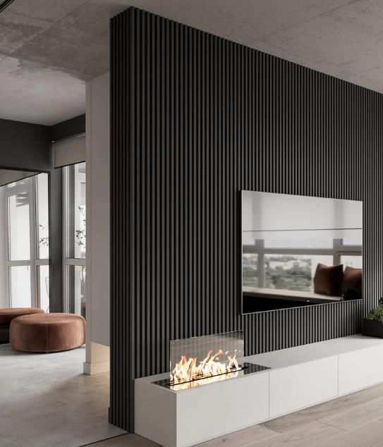 如果您想讓客廳保持黑暗和簡(jiǎn)約,同時(shí)仍然融入一些紋理,那么電視后面的黑色木板條墻可能是最好的選擇。實(shí)現(xiàn)這種外觀的最佳方法是給自己買一些 黑色木板條墻板。在那之后,你只需要一個(gè)里面有壁爐的電視柜。當(dāng)您發(fā)現(xiàn)時(shí),請(qǐng)告訴我們!