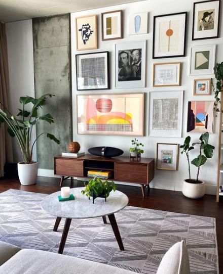 它本身不是口音墻,但至少值得一提。裱框藝術(shù)印刷品,在電視周圍創(chuàng)建了這個(gè)畫廊墻,這基本上與藝術(shù)沒有區(qū)別。絕對(duì)不像我們看過的其他款式那樣簡(jiǎn)約,但如果你想要更折衷一點(diǎn)的東西,它仍然很漂亮。