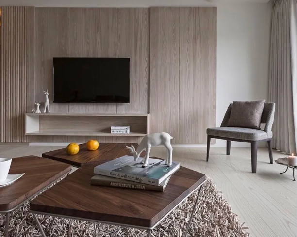 木飾面板也叫科定板,最早的時候是由一家叫科定的臺灣公司研發(fā)生產(chǎn)的,它的范圍更加廣義。木飾面多半是采用多層板做基底,表面貼天然木皮或科技木皮,紋理仿真度高,造型一般都是平面效果,比較適合現(xiàn)代簡約、極簡風(fēng)格,像日系muji風(fēng)用原木色木飾面板來詮釋相當(dāng)?shù)轿?。簡單來說就是"表皮+基層板=飾面板"