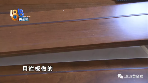 陳老師:“這個門送過來,發(fā)掘問題了,就這個門整個開裂的,門上面裂開以下裂開,都有問題的,門的邊框板油漆整個起泡的,護墻就是爛的,用爛板做的,(原本)理應(yīng)是高質(zhì)木門高質(zhì)材質(zhì) 。”