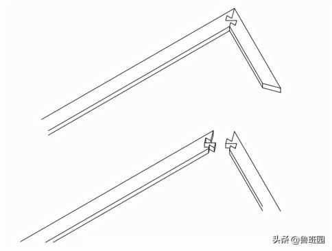 針對傳統(tǒng)的燕尾榫,榫頭與榫槽分別設(shè)在2個部件上,一個部件集中設(shè)立梯臺榫頭,而另一個部件集中設(shè)立與之外形互補的梯臺形榫槽,進(jìn)而使二者慎密連通。而該榫對傳統(tǒng)燕尾榫構(gòu)造進(jìn)行設(shè)計改善,2個貫串接部件均分別設(shè)有1對梯臺形榫槽和與其外形互補的梯臺形榫頭。成為一類斜角連通節(jié)點,此榫用來木門構(gòu)造用材的斜角連通,可有效以免2個部件在受力時脫開,同時減少加工難度。