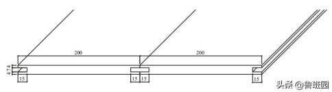 如下圖所示,芯板的長度為1784 mm、寬度為200mm,厚度為15mm,芯板在距離高低兩頭4 mm處各開1個厚度為7 mm、深度為15mm的凹槽以擺放長度為1784mm、寬度為30mm、厚度為7mm木板條。