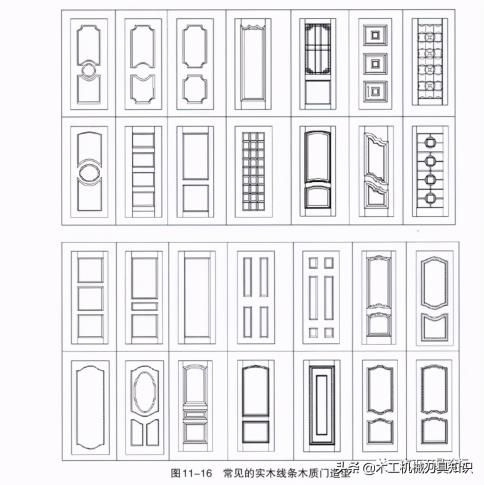 有類實(shí)木門外型簡潔,僅是木板構(gòu)造,但為了以免平板一起的死板形象,在實(shí)木門的邊梃做成型銑邊.銑邊既滿足了邊梃與芯板的結(jié)合需要,又給實(shí)木門外表帶來外型、 實(shí)木門的常見外型:見圖16及17。