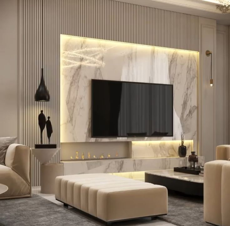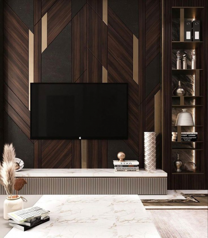 使用大理石飾面墻可以實現(xiàn)另一種豪華的流行電視墻單元設(shè)計。墻壁的其余部分保持非常簡單,以實現(xiàn)完整的 la 模式設(shè)計。中性和柔和的顏色最適合這種設(shè)計。背光室內(nèi)燈有助于保持這種設(shè)計的華麗氛圍。簡單的懸掛式吊燈非常適合走廊的其他部分。
