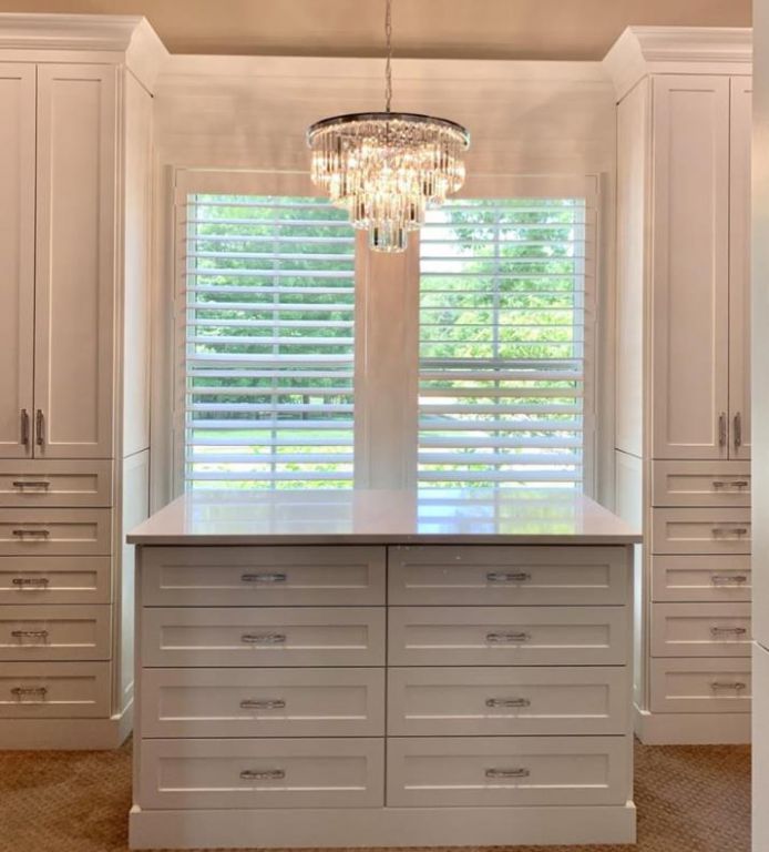一個(gè)聰明的方法是使用裝飾冠或添加一個(gè)成品頂部。這一步為您的臥室、書房或客廳衣櫥增添了“好戲” 。然而,不要試圖讓你現(xiàn)有的皇冠與房間里現(xiàn)有的皇冠相匹配。它從不排隊(duì)。所以,如果你有現(xiàn)有的皇冠,要么把衣柜放低——用自己的皇冠(或平板)——或者在整個(gè)房間里安裝匹配的皇冠。